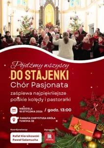 „Pójdźmy wszyscy do stajenki”. Kolędowanie z chórem Pasjonata w naszej parafii. W niedzielę, 18 stycznia wystąpi chór Pasjonata, który zaprasza mieszkańców na koncert najpiękniejszych polskich kolęd i pastorałek.